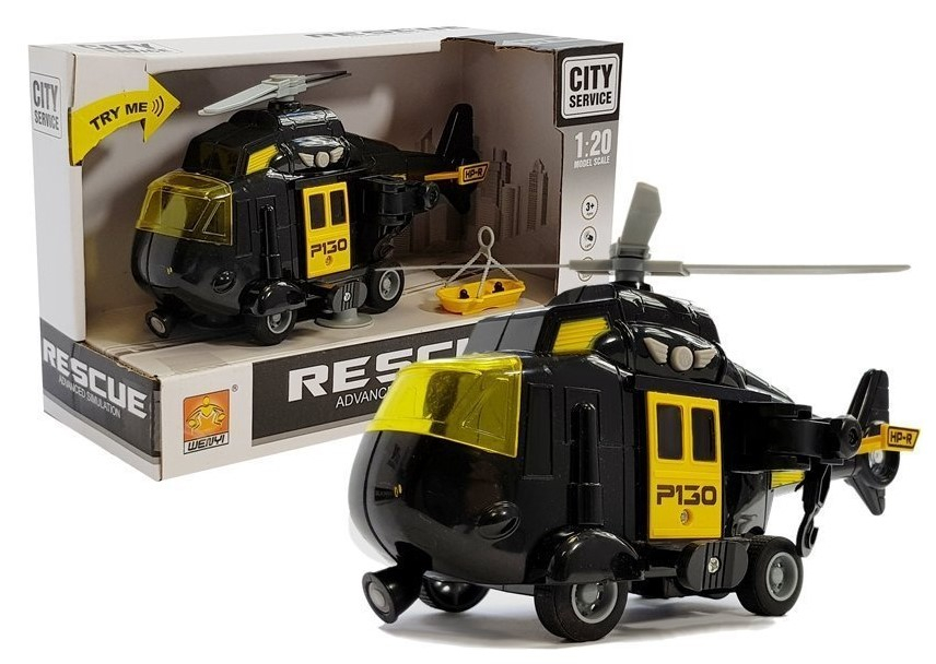 Elicopterul de salvare este o jucărie excelentă pentru micii pasionați de aviație și intervenții de urgență. Datorită sunetelor și luminilor realiste, precum și funcțiilor precum elice pliabile și cârlig de transport, elicopterul devine un instrument ideal pentru jocurile de salvare a persoanelor aflate în dificultate. Jucăria este realizată la scara 1:20, fiind foarte detaliată și asemănătoare cu un elicopter real de salvare. O oportunitate perfectă de a dezvolta imaginația copilului, oferindu-i totodată multă distracție!