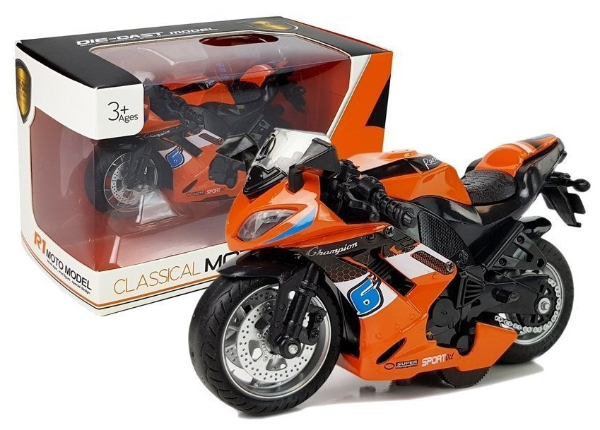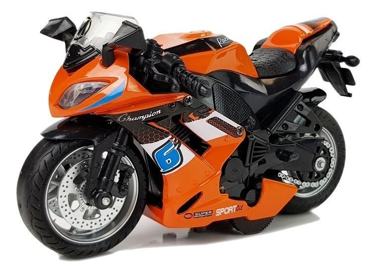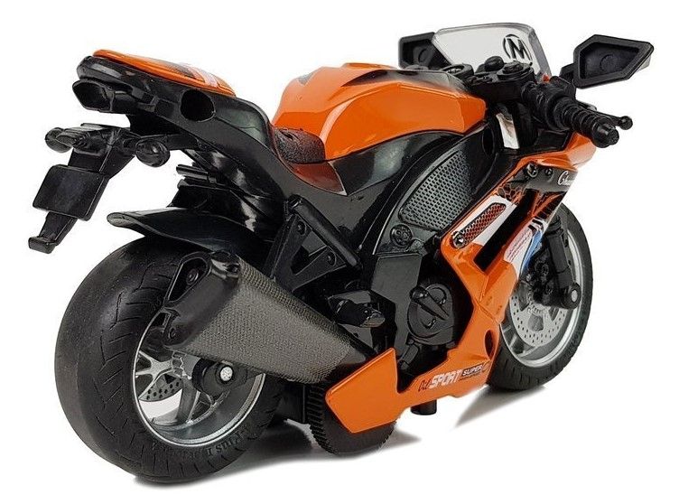 Motocicletă cu tracțiune și sunet 1:14 Portocaliu ⭐