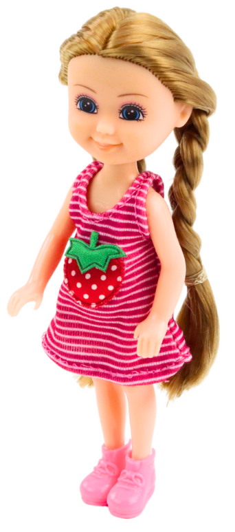 Setul cu păpușă, cărucior și pisicuțe este o alegere excelentă pentru copiii care adoră jocurile tematice și să aibă grijă de animale. Setul conține o păpușă cu păr blond lung, împletit în codițe, îmbrăcată într-o rochiță roz în dungi și pantofi roz.