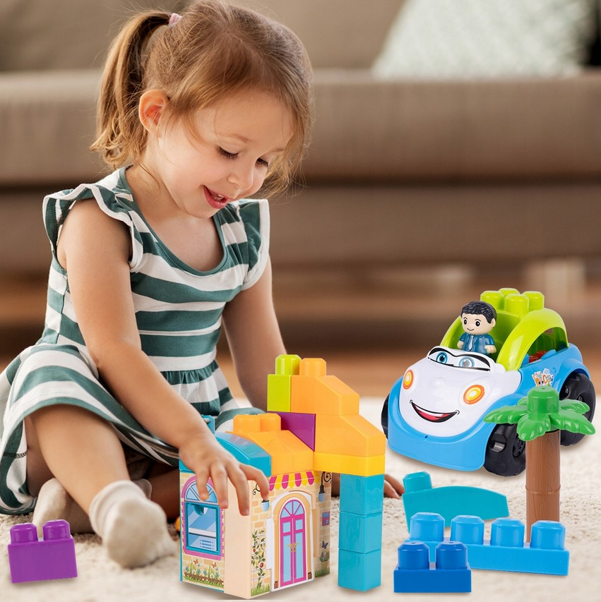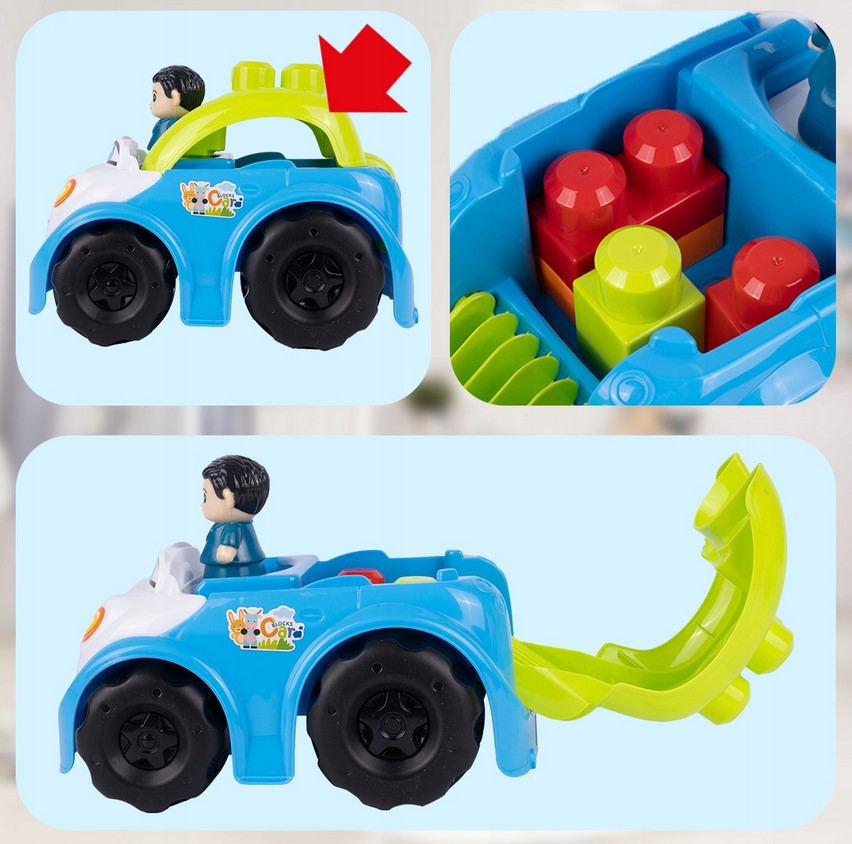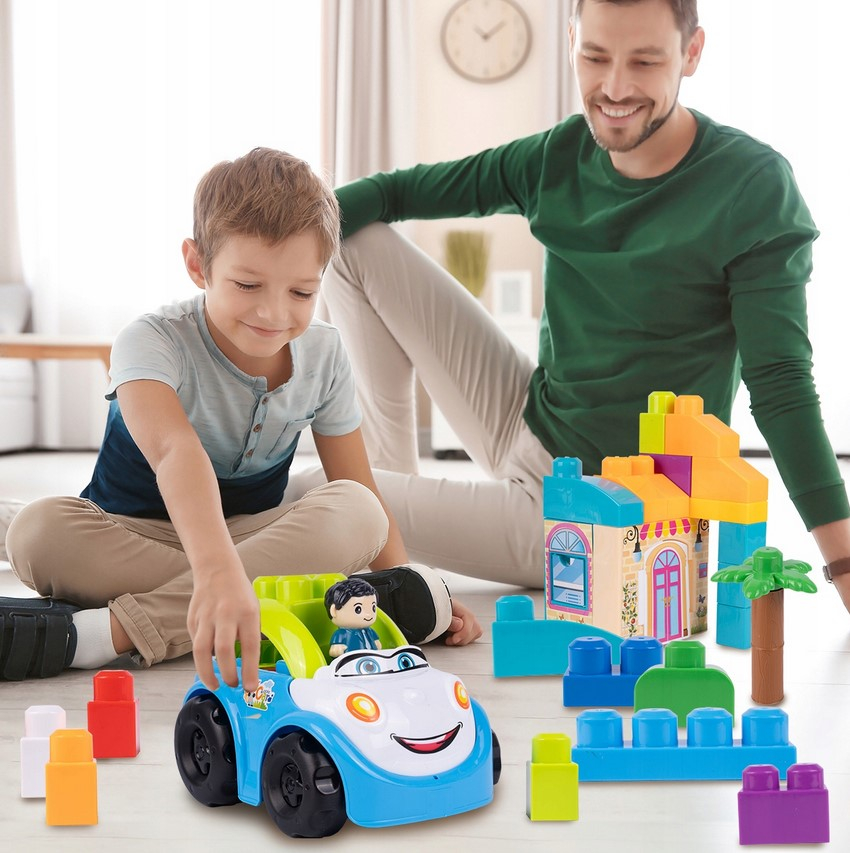 Acest set colorat include o mașinuță simpatică care transportă 40 de blocuri mari, ideale pentru mânuțele celor mici. Jucăria încurajează creativitatea, dezvoltă abilitățile motorii și oferă ore întregi de joacă educativă!